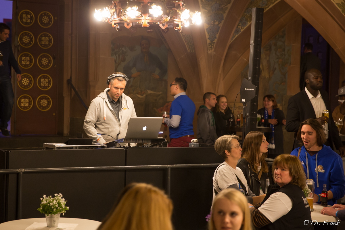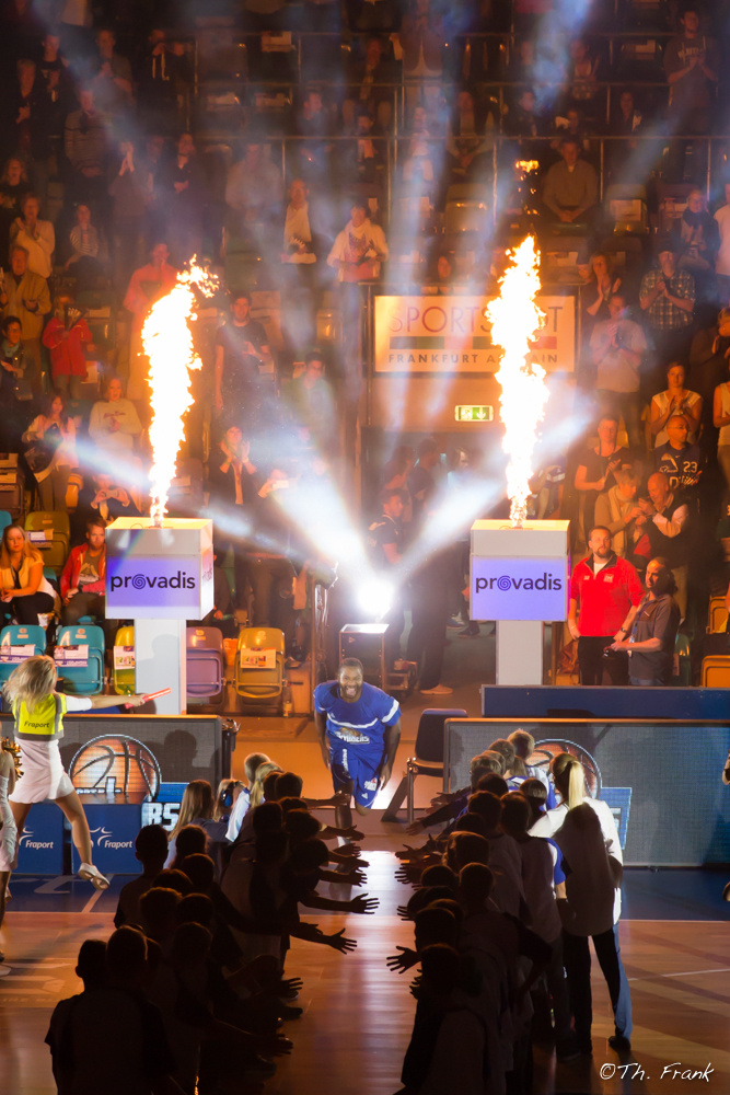 High Tec hat die FRAPORT Skyliners in der Saison 2015/2016 mit umfassenden Leistungen in den Bereichen Ton- und Lichttechnik unterstützt. Unsere Pyrotechniker haben die abgedunkelte Halle zum Einlauf auf das Spielfeld mit Fackelschein beleuchten. Sehr stimmungsvoll! Unser DJ hat die Arena mit guten Sounds versorgt – besonders viel Spaß hat das natürlich bei der Feier des Fiba Europe Cup in der Frankfurter City und anschließend im Römer gemacht. Die Feierlichkeiten waren eine reine Freude! Übrigens: Die FRAPORT Skyliners sind unsere Lieblings-Basketball-Mannschaft, in guten und in schlechten Zeiten. Dieser Sport macht einfach Spaß – auch wenn man auf der Bank sitzt. Einfach mal hingehen und zuschauen!