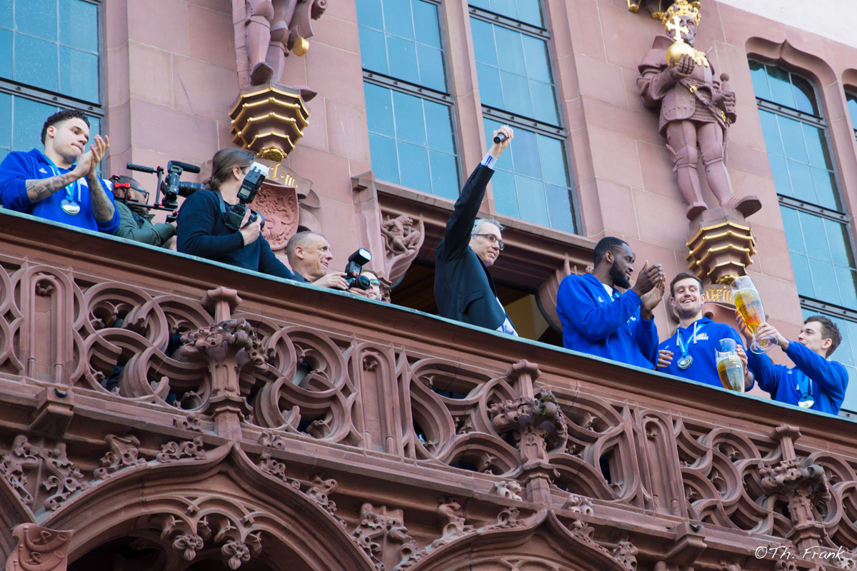 Der Erfolg unserer Kunden tut uns gut! Irgendwie steht man als Dienstleister ein bisschen mit im Rampenlicht … Und so haben die FRAPORT Skyliners mit ihren fantastischen sportlichen Leistungen in der aktuellen Saison dafür gesorgt, dass wir aus dem Jubeln gar nicht mehr herauskommen. Die blauen Hünen haben Einiges erreicht: Halbfinale Top Four! Halbfinale BBL! Gewinn des Fiba Europe Cups! Respekt und herzlichen Glückwunsch.